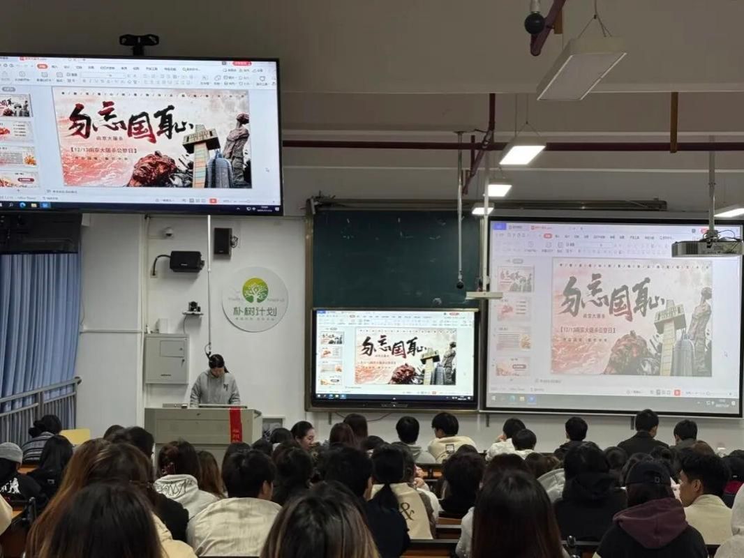 课程伊始,胡芷颖同学以《勿忘国耻——南京大屠杀死难者国家公祭日》为题开展专题分享,以“铭记历史是最好的传承,珍爱和平是永恒的使命”为核心,从“历史之痛、暴行之证、公祭之重、青春之责”四个方面切入,系统梳理了南京大屠杀的悲壮历程与国家公祭日的深远意义。