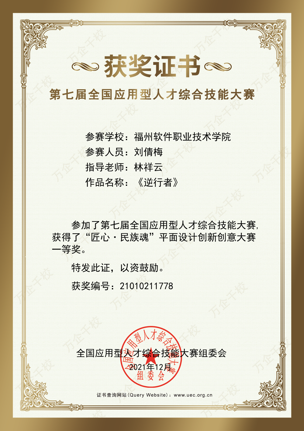 教师林祥云老师带领学生参加第七届全国应用型人才综合技能大赛“匠心•民族魂”平面设计创新创意设计大赛荣获全国一等奖!