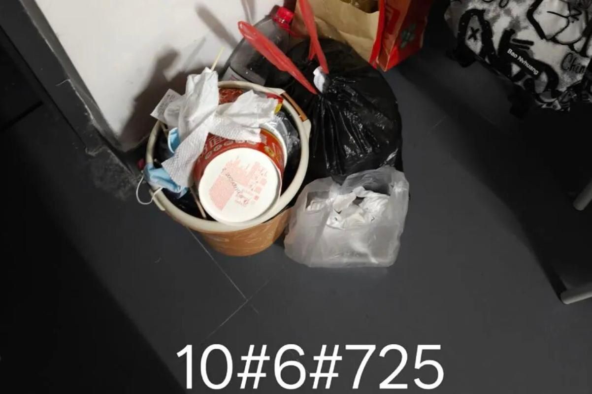 以下图片是在近期查房的过程中,发现部分宿舍垃圾存在集中堆放的情况。