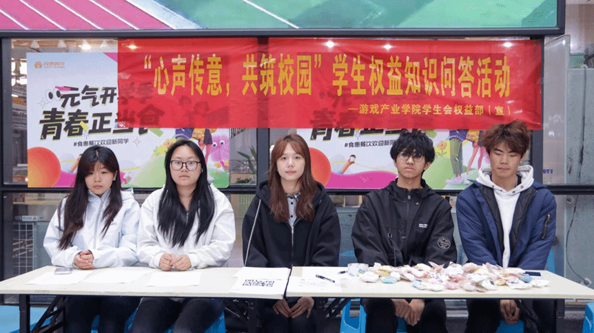 为进一步提升学生权益保护意识,搭建学生与学校的高效沟通桥梁,切实解决学生在校期间的权益诉求,12月9日,游戏产业学院学生会权益部于风雨长廊成功举办“心声传意,共筑校园”学生权益知识问答活动。活动以“答题学权益、反馈促优化”为核心,吸引了大批学生踊跃参与,现场氛围热烈有序,切实将权益保障与校园共建理念传递到每一位学生心中。