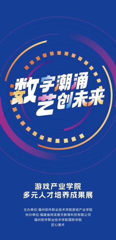 由福州软件职业技术学院游戏产业学院、国际学院、福建省网龙普天教育科技有限公司、匠心美术共同打造。五大主题展区蓄势待发——从课堂走出的专业佳作、校企共创的实战项目、非遗文化的创意设计、跨越国界的文化对话,到充满奇思的K12启蒙作品,共同编织出一幅生动的人才培养全景画卷。
