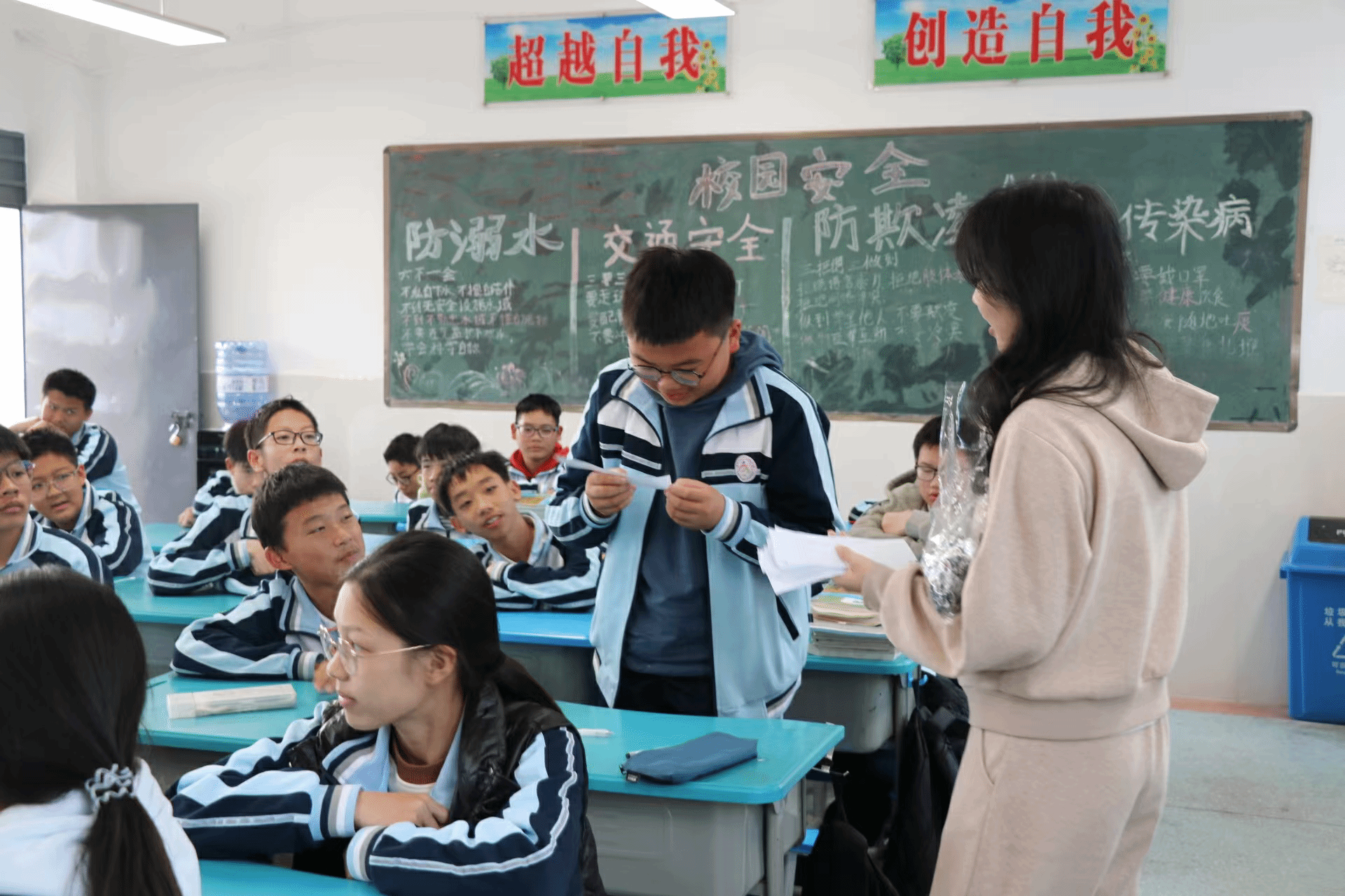 围绕班会宣讲的禁毒防艾核心知识点,志愿者们拿出事先准备的题目,鼓励同学们主动举手抢答,并为所有参与答题的同学分发小礼品,用贴心小礼物激发大家的学习积极性,将禁毒防艾的安全理念更深刻地留在心中,助力大家将防护知识转化为日常行为。