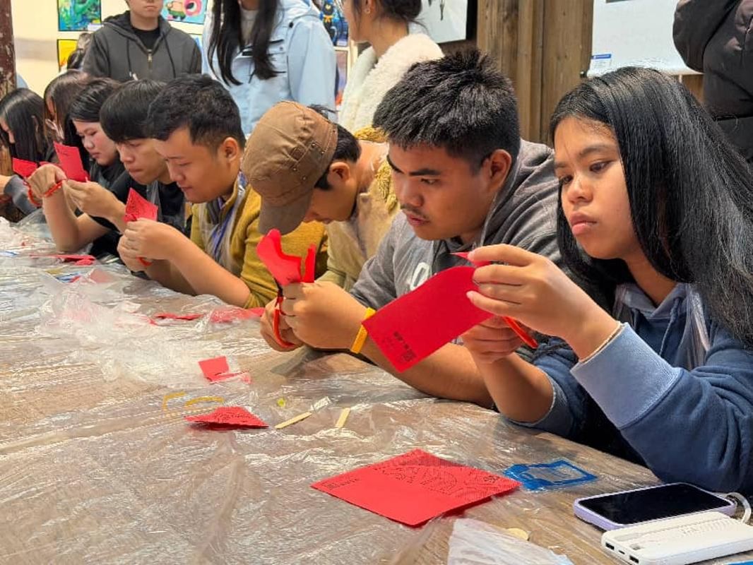 △图为中泰职业技能培训泰国学员体验非遗剪纸