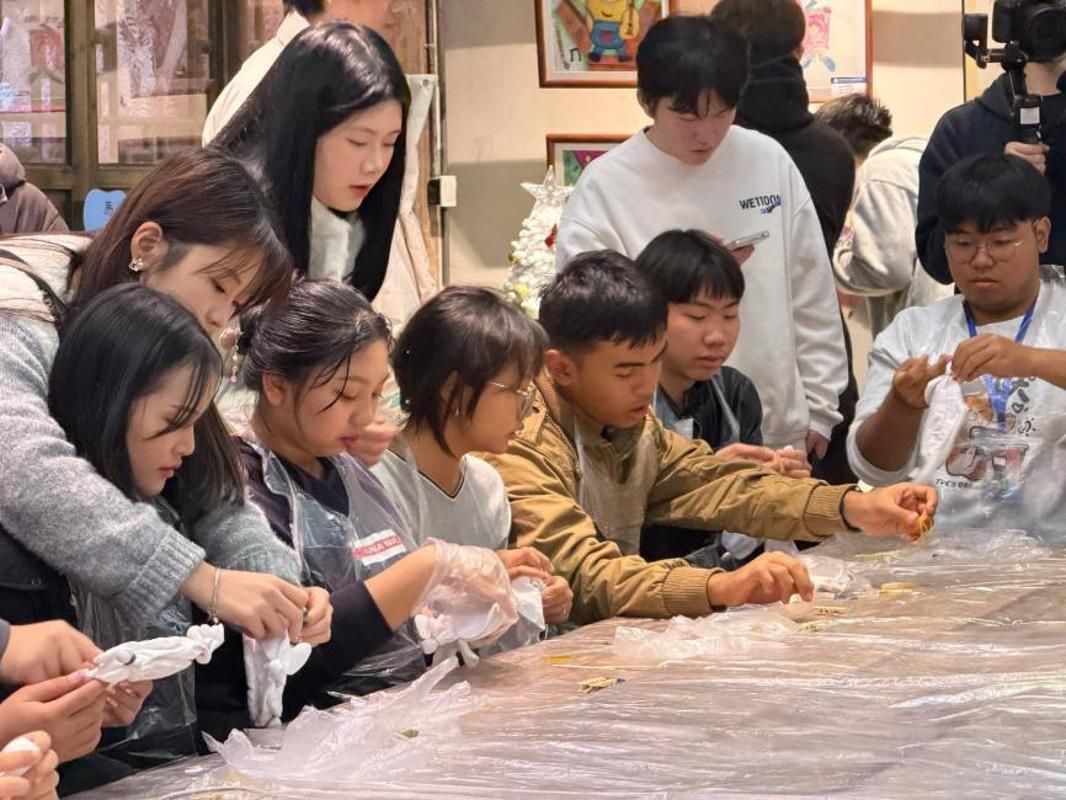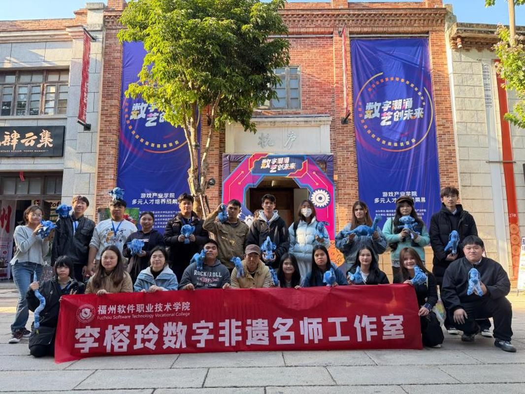 近日,在福州上下杭历史文化街区举办的“数字潮涌・艺创未来——福州软件职业技术学院游戏产业学院多元人才培养成果展”期间,我校“李榕玲数字非遗名师工作室”教师团队为中泰职业技能培训泰国学员开展了非遗DIY体验活动。泰国学员们亲身体验了扎染、剪纸等中国传统技艺。在创作实践环节,学员们精心制作了独具特色的非遗作品;随后的分享环节,大家踊跃展示成果,交流心得,现场氛围热烈。