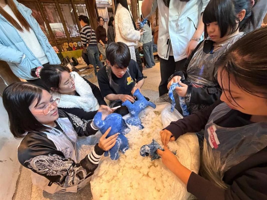 △图为中泰职业技能培训泰国学员体验非遗扎染