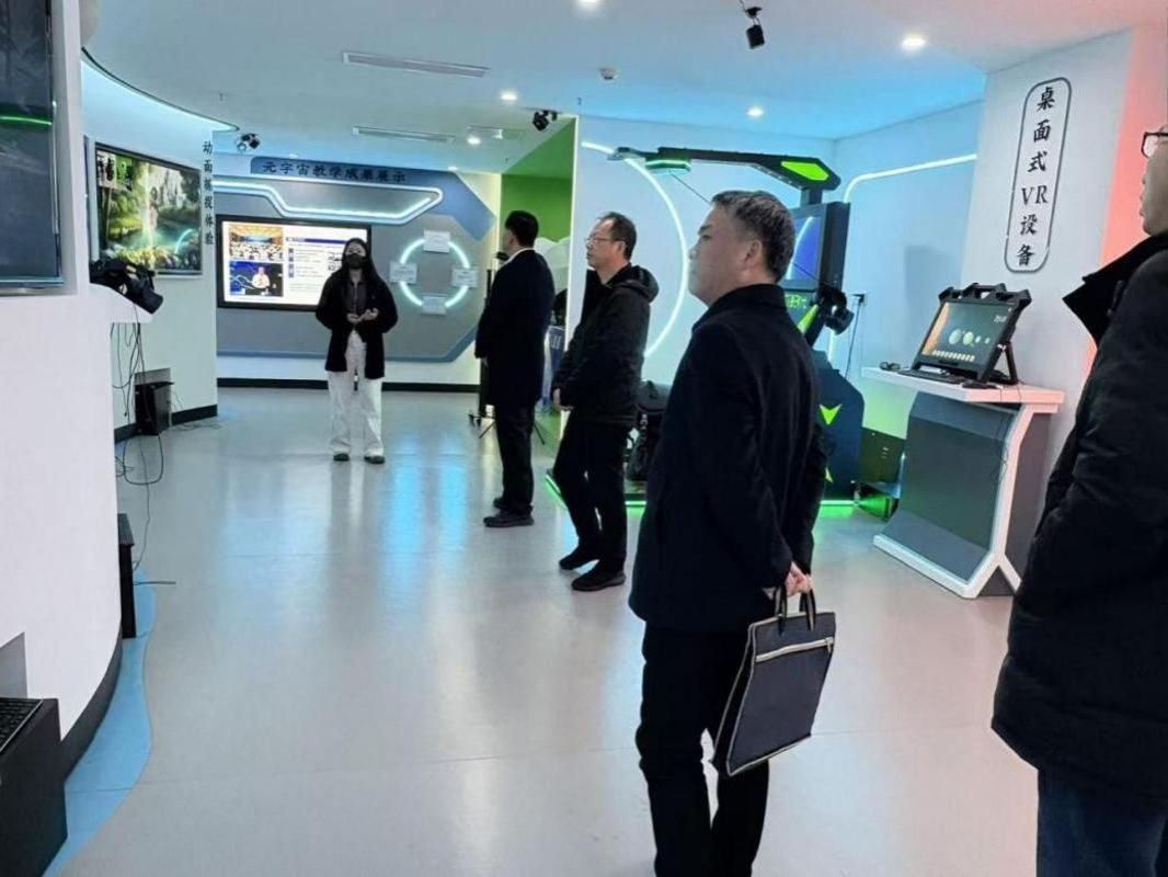 交流伊始,我校陪同参访团依次参观剪纸工作室、新技术体验中心、元宇宙体验中心等地。相关负责人介绍了各实训场地的建设理念与产教融合运行模式,参访团给予高度认可,双方就实训资源优化、教学模式创新交换了初步意见。