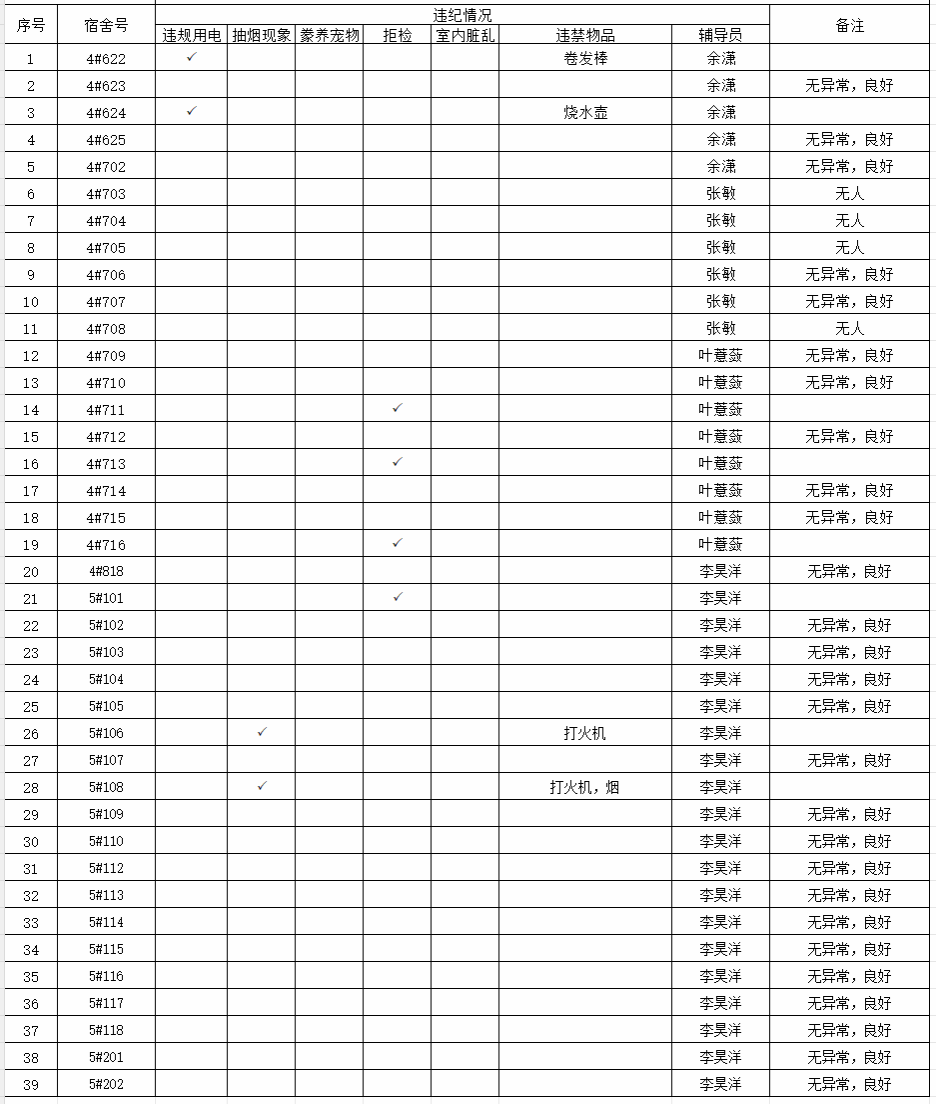 在本周的宿舍抽查情况中,发现部分宿舍持有香烟、打火机等违规物品,上述违纪行为已通知相关辅导员进行督促整改。请同学们引以为戒,养成“日产日清”的习惯,及时清理垃圾,避免长时间堆放;自觉遵守相关校规校纪,共同维护校园秩序。