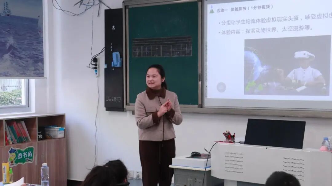 活动伊始,“数字赋能K12教育”趣味课堂率先启幕。游戏产业学院教师带领“星心‘游’我”志愿服务队,携多套VR设备走进教室。在志愿者的耐心指导下,同学们佩戴 VR 眼镜,沉浸式步入奇妙的虚拟世界——时而探索动物王国的奥秘,时而遨游浩瀚太空,沉浸式体验让孩子们直呼过瘾。前沿的数字技术不仅点燃了孩子们对科技的好奇与向往,更生动诠释了“数字赋能教育”的无限潜力,为乡村课堂注入了蓬勃的创新活力。