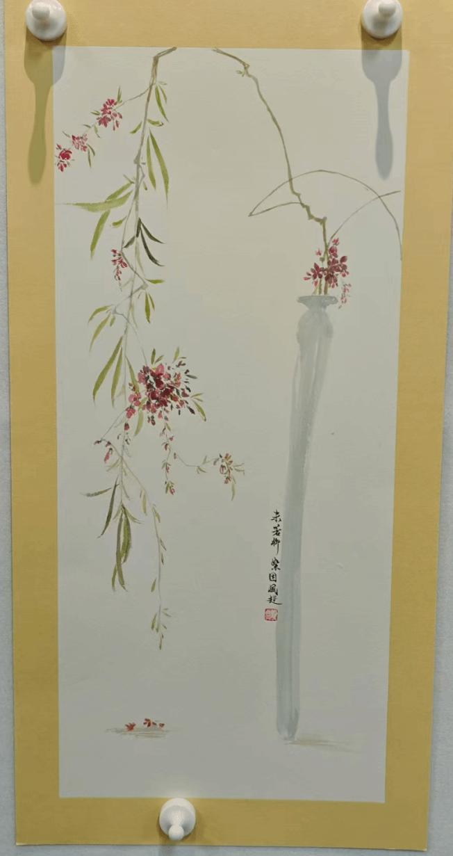 本次教学改革聚焦“以市促学、以市促练”,教学团队摒弃传统单一授课模式,深化校企协同育人机制,将市场需求融入课程设计环节。学生们依托课堂习得的笔墨技法,结合市场审美偏好创作山水、花鸟等题材国画作品,由校企合作方统一寄售至集市。