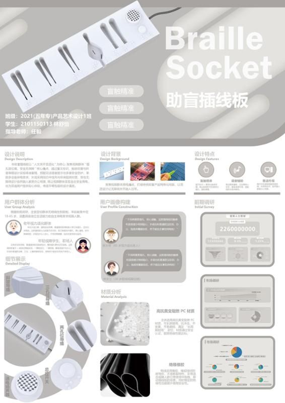 ▲ 林舒怡《助盲插线板》 2021级五年专产品艺术设计1班