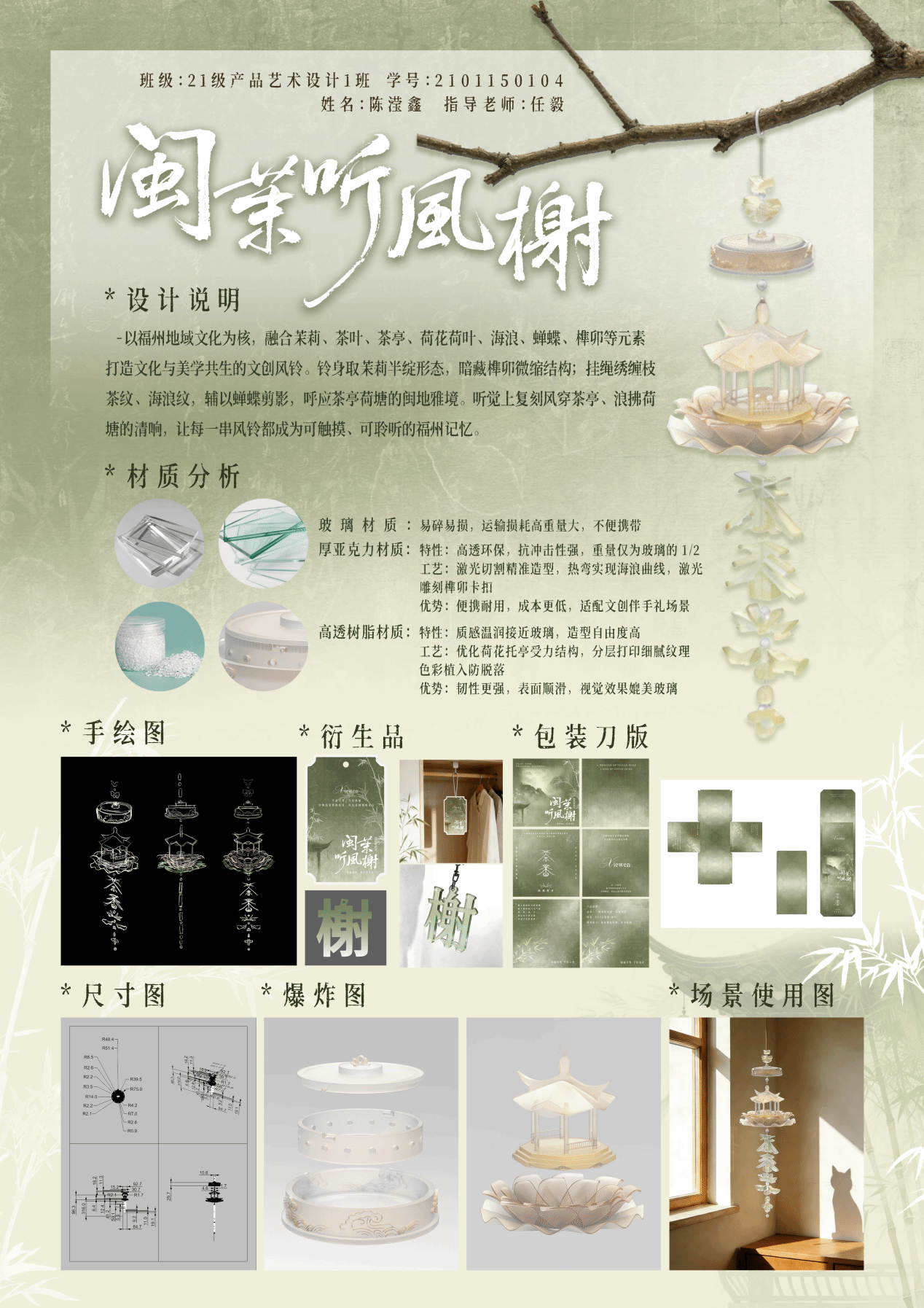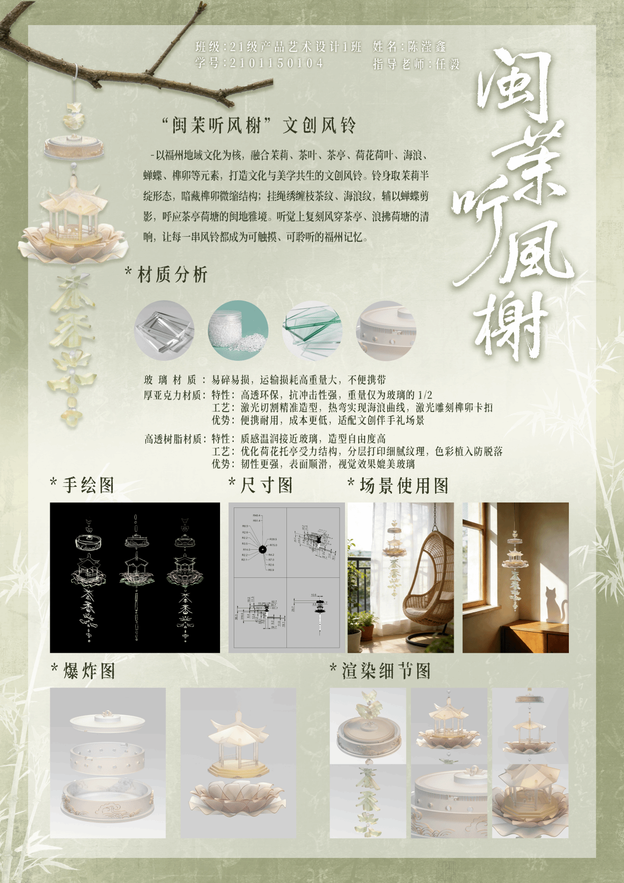 ▲ 陈滢鑫 《闽茉听风榭文创风铃设计》 2021级五年专产品艺术设计1班