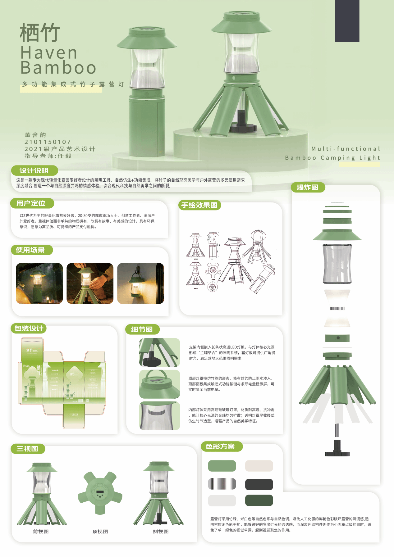 ▲ 董含韵 《栖竹露营灯》 2021级五年专产品艺术设计1班