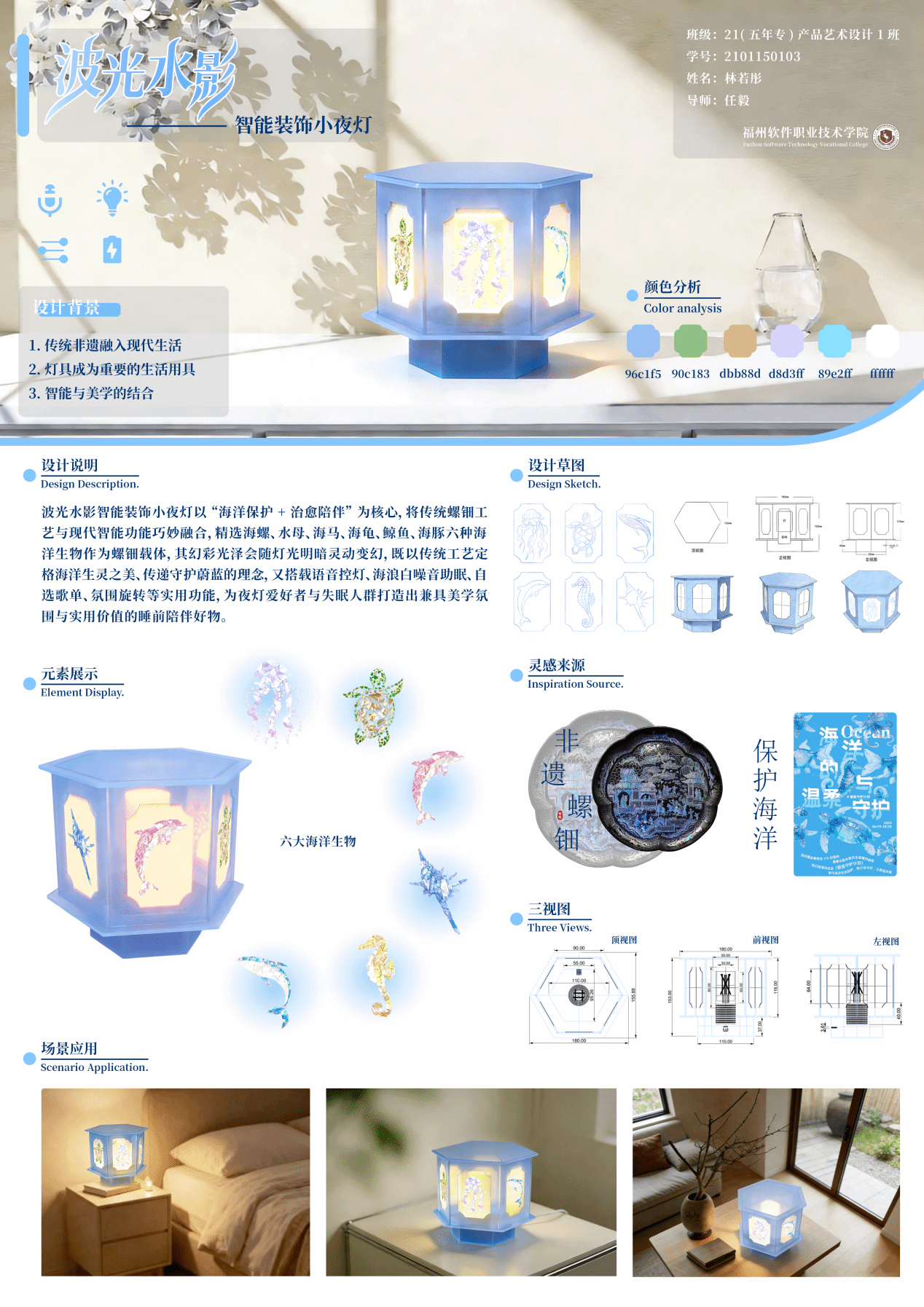 ▲ 林若彤 《波光水影智能装饰小夜灯》 2021级五年专产品艺术设计1班