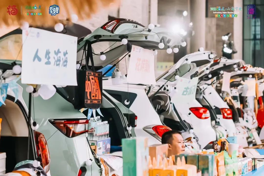 活动当晚,多辆私家车搭建后备箱产品集市、露营基地、电商等交流平台。为市民和游客提供一场沉浸式的后备箱生活体验之旅。