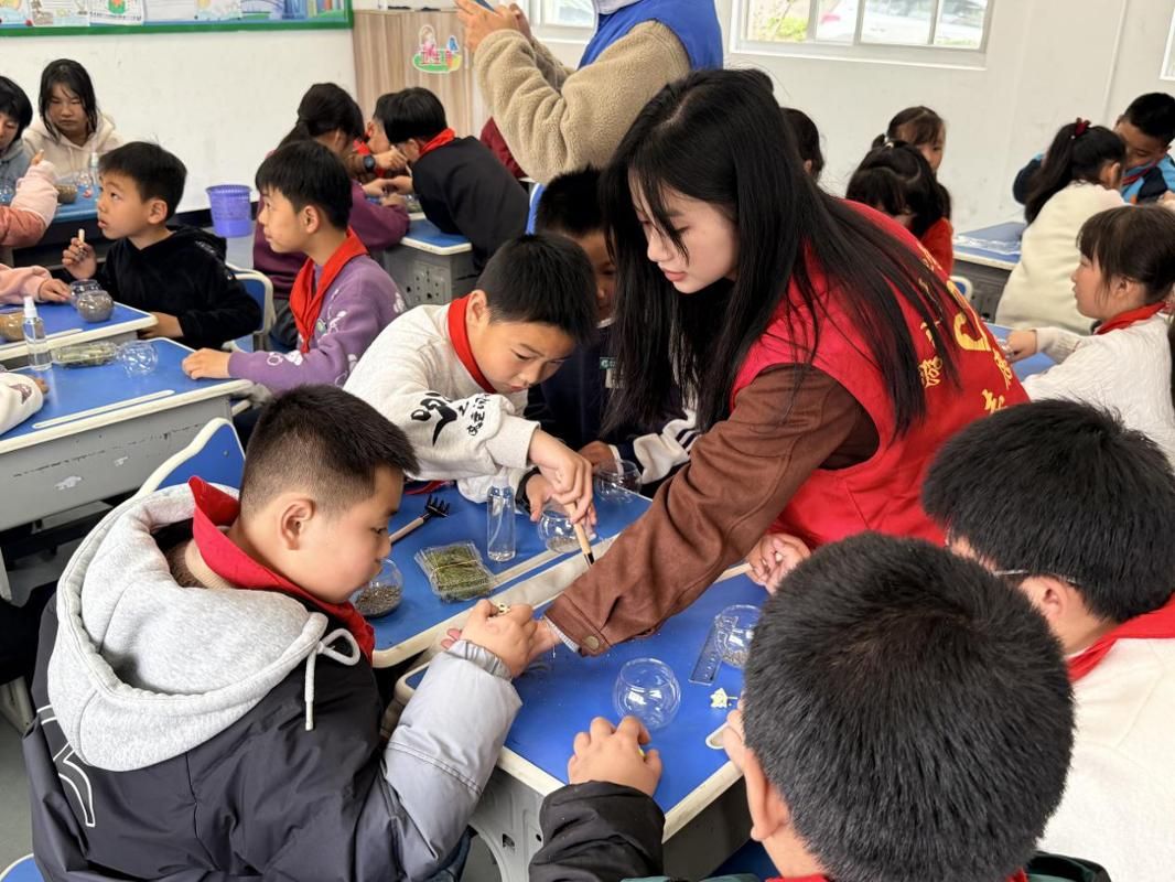 随后,志愿者们指导孩子们亲手制作生态盆栽,从栽种绿植到装饰搭配,大家在实践中体验种植乐趣,学习养护技巧,更在动手过程中感悟责任与坚持的意义。