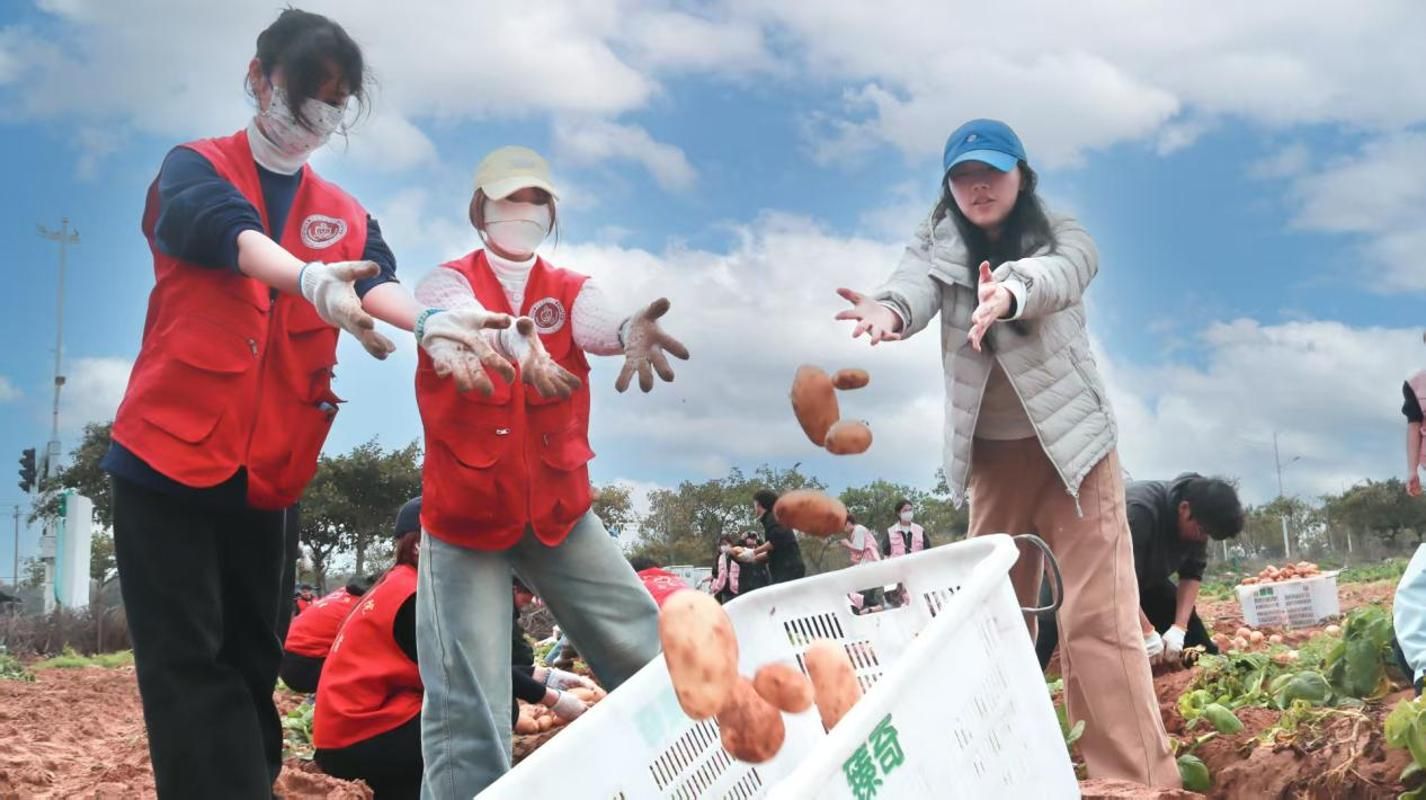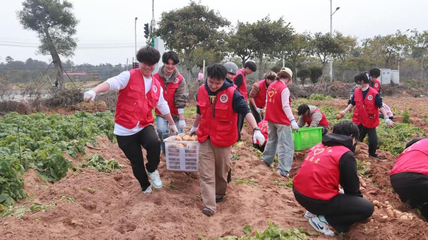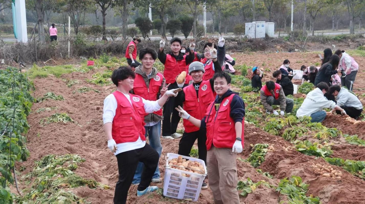 田间地头满是劳动热情与互助氛围。学员们分工协作、配合默契,有人刨土挖掘,有人捡拾分拣,有人装袋搬运,寂静的田地顿时热火朝天。大家高举成果相互展示,在协作中体会到劳动的价值与集体的力量。
