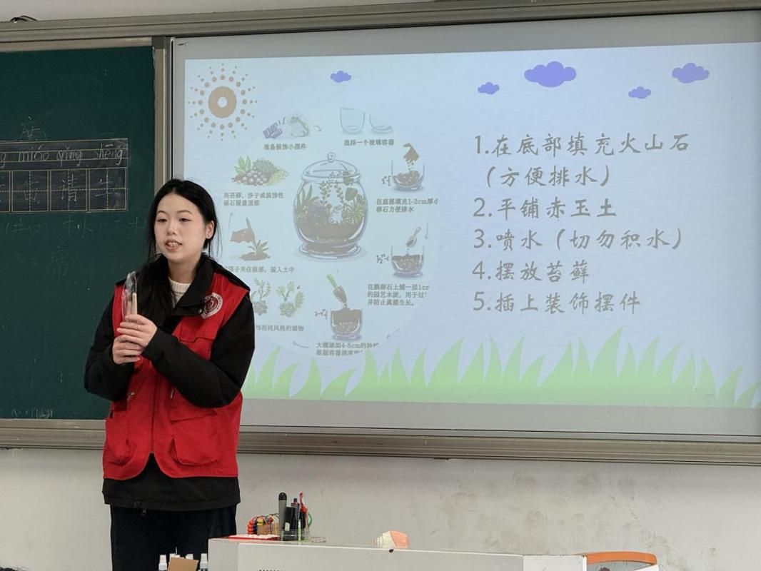 随后,志愿者们指导孩子们亲手制作生态盆栽,从栽种绿植到装饰搭配,大家在实践中体验种植乐趣,学习养护技巧,更在动手过程中感悟责任与坚持的意义。