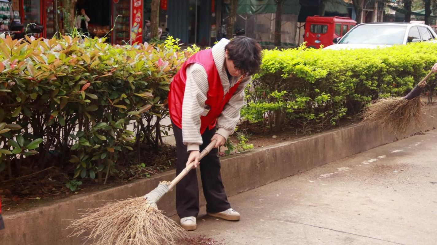 随后,志愿者们拿起扫帚、垃圾夹,认真清理街道上的落叶、烟头和各类杂物。大家分工协作,不放过一个卫生死角,汗水与笑容交织成忙碌而有序的画面。经过一番认真清扫,街道环境焕然一新、干净整洁,志愿者们用实实在在的行动美化了社区环境,赢得了居民的一致好评。