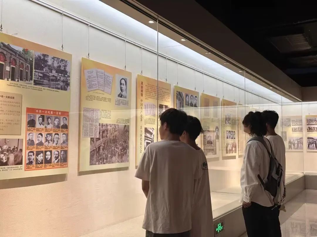 游戏产业学院青年行暑期社会实践队的队员们随着志愿者讲解员走进“共产党精神谱系”展区,中国共产党成立百年以来,为了实现中华民族伟大复兴的中国梦,党和人民所展现出的一系列可歌可泣中国共产党精神。