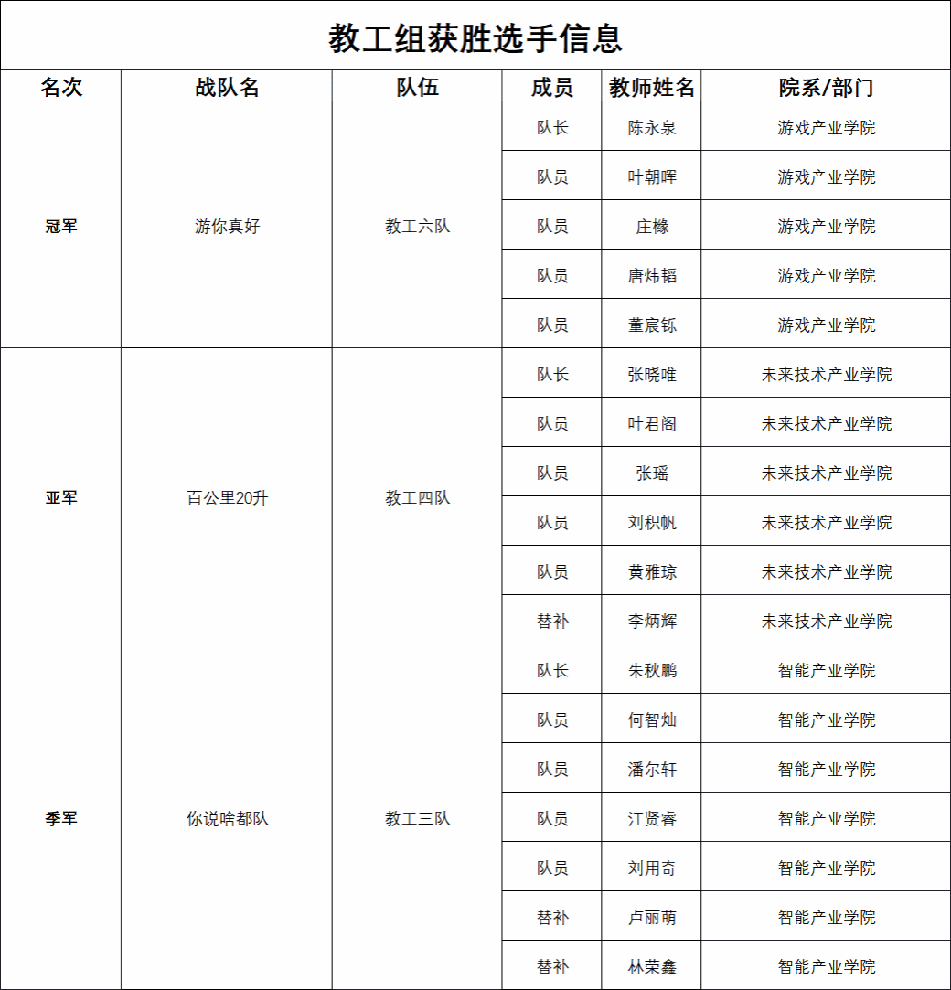 教工组赛场同样精彩纷呈,教工六队“游你真好”战队凭借默契的团队协作,摘得冠军;教工四队“百公里20升”夺得亚军;教工三队“你说啥都队”获得季军。