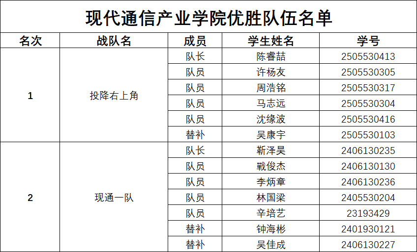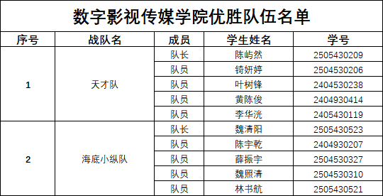 本次比赛竞争激烈,精彩纷呈,各队伍尽显竞技水平与团队风采。截至目前,数字影视传媒学院、现代通信产业学院、数据产业学院的对抗赛已圆满结束。具体晋级名单如下: