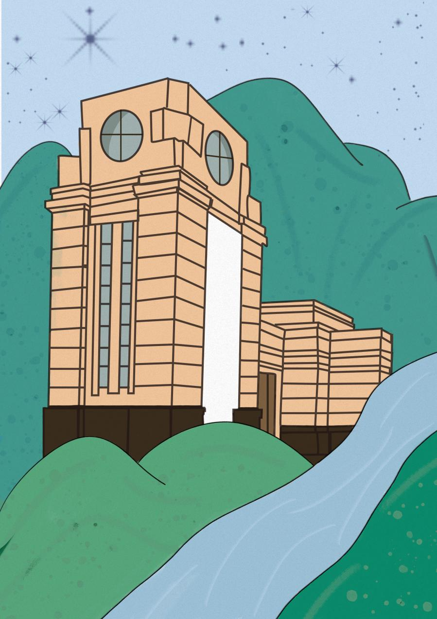 ④本作品以绿色为主题,将清澈的河水与连绵起伏的青山环绕于教学楼,打造人与自然和谐共生的现代绿色生活。