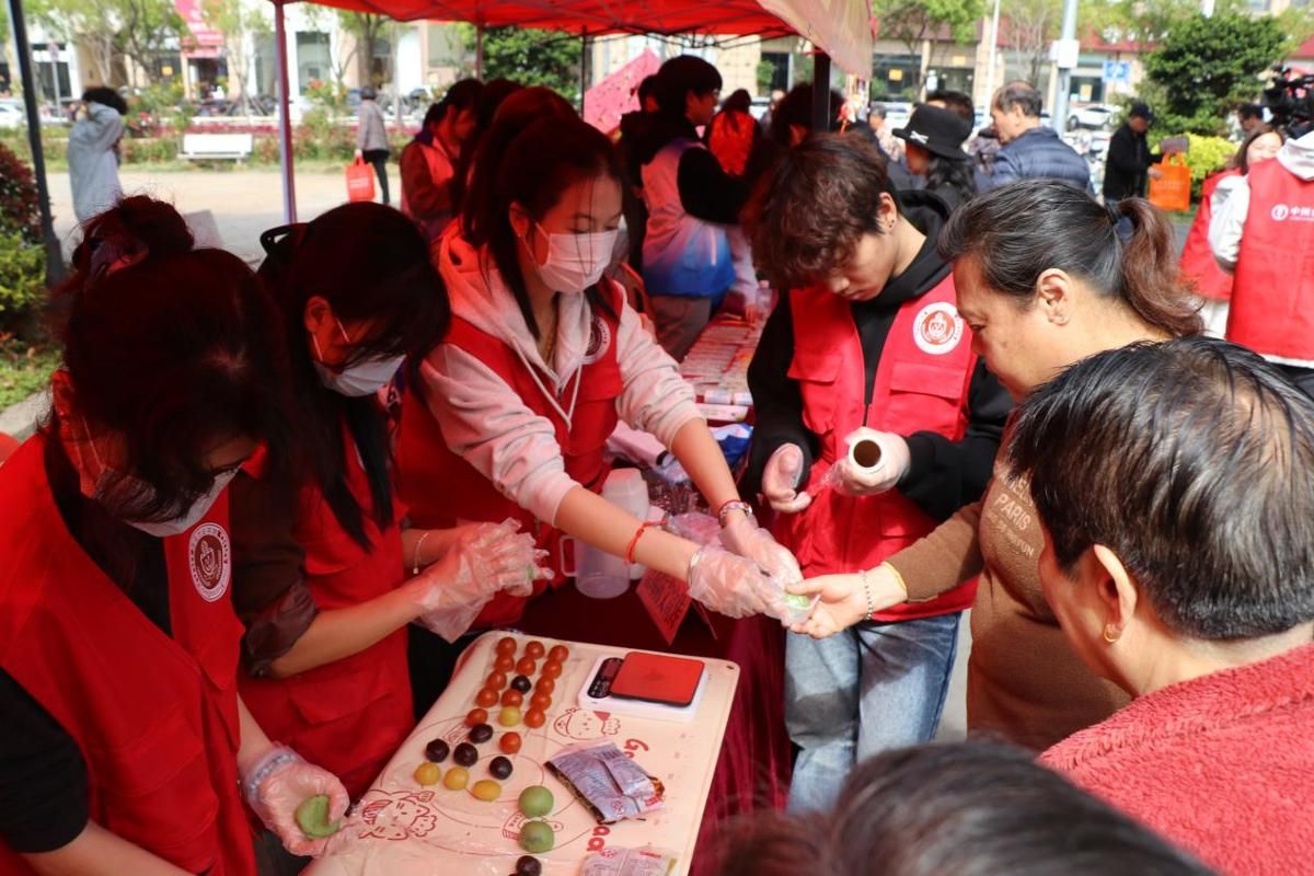 随后,大家纷纷动手,揉面、包馅、搓圆,在亲手实践中,青年学子不仅掌握了一门传统手艺,更在指尖触碰中感受着民俗的温度与传承的力量。青团制作完成后,大家将这份饱含心意的礼物分送给社区老人和一线工作人员,以表敬意与感谢。